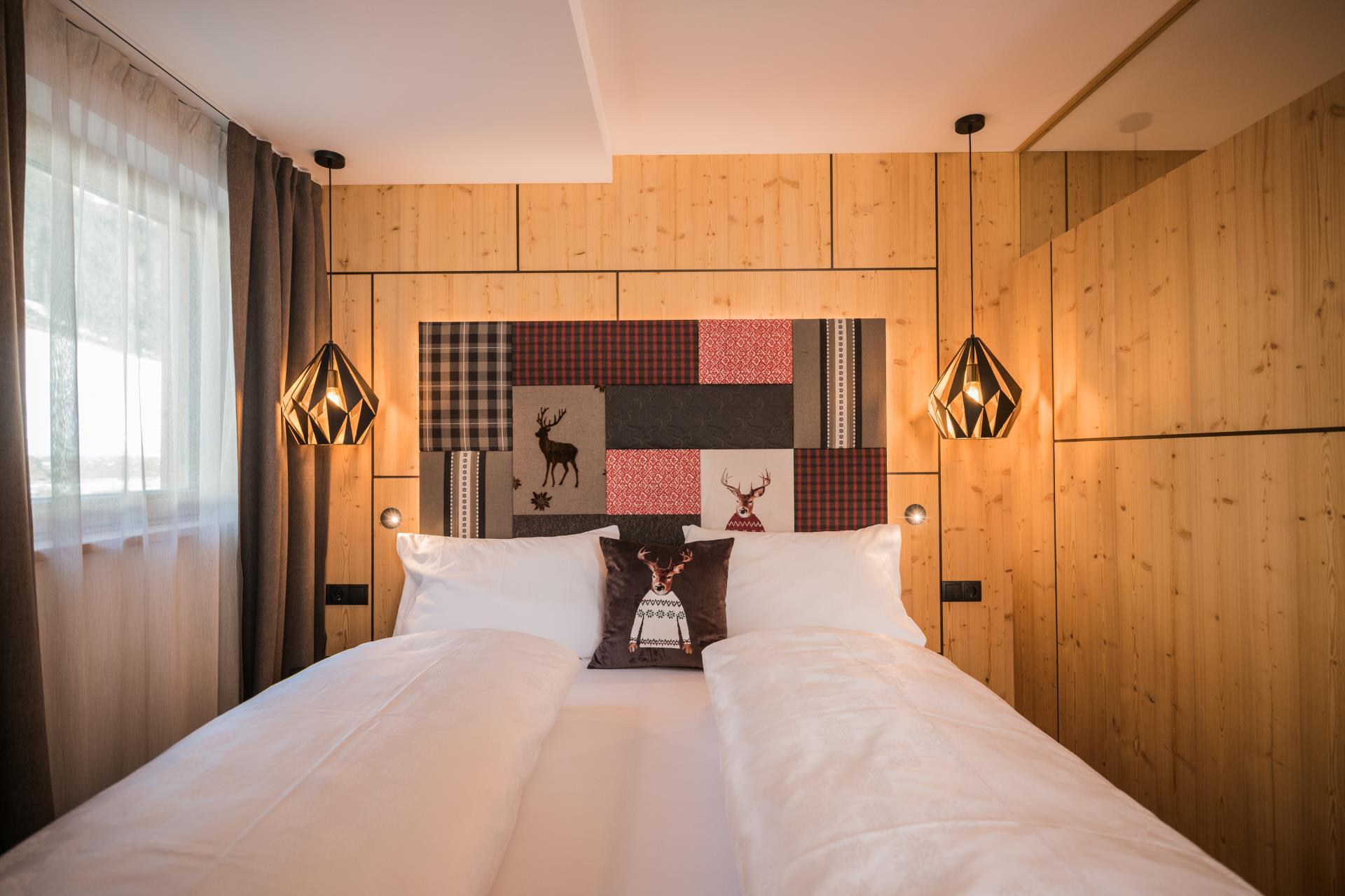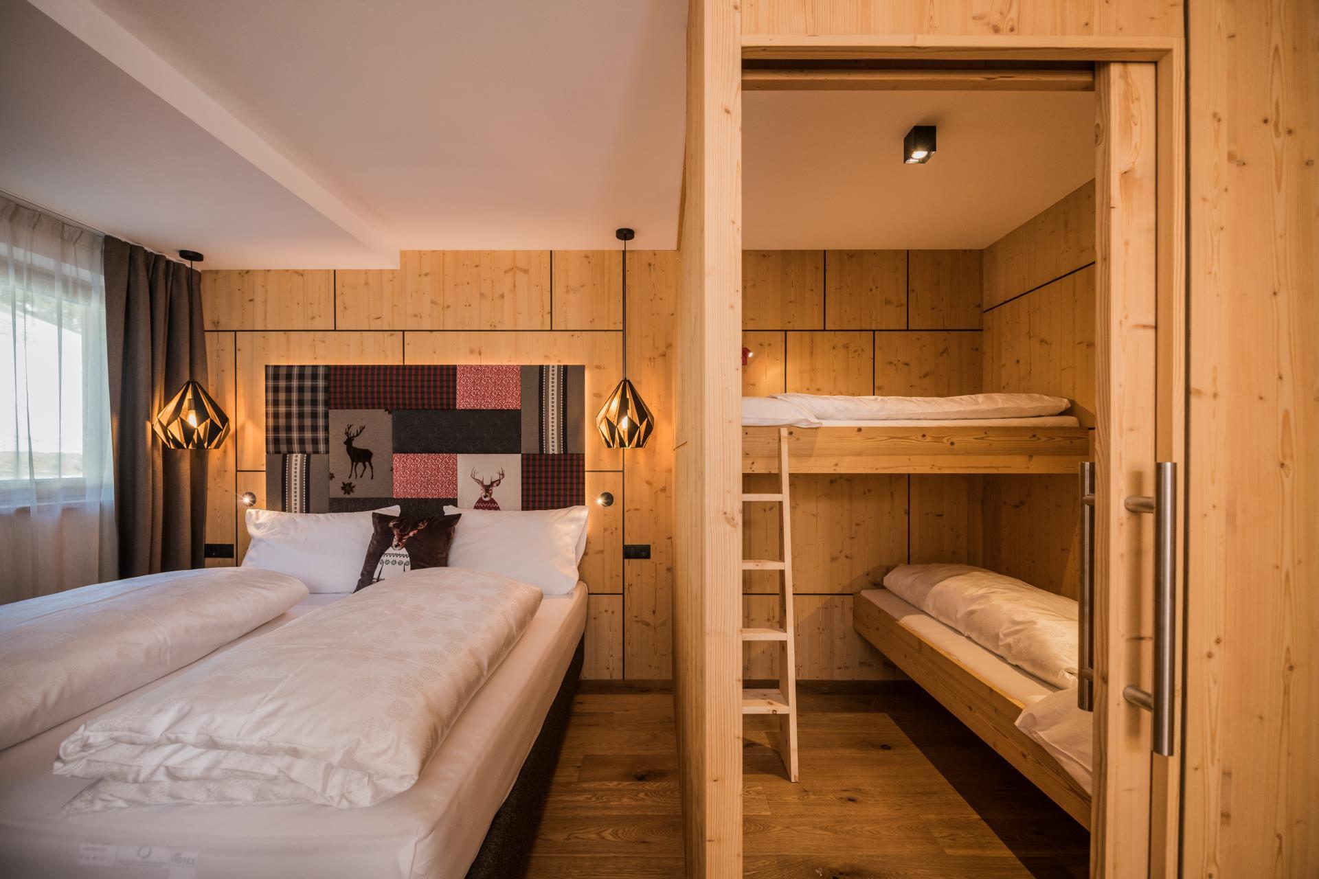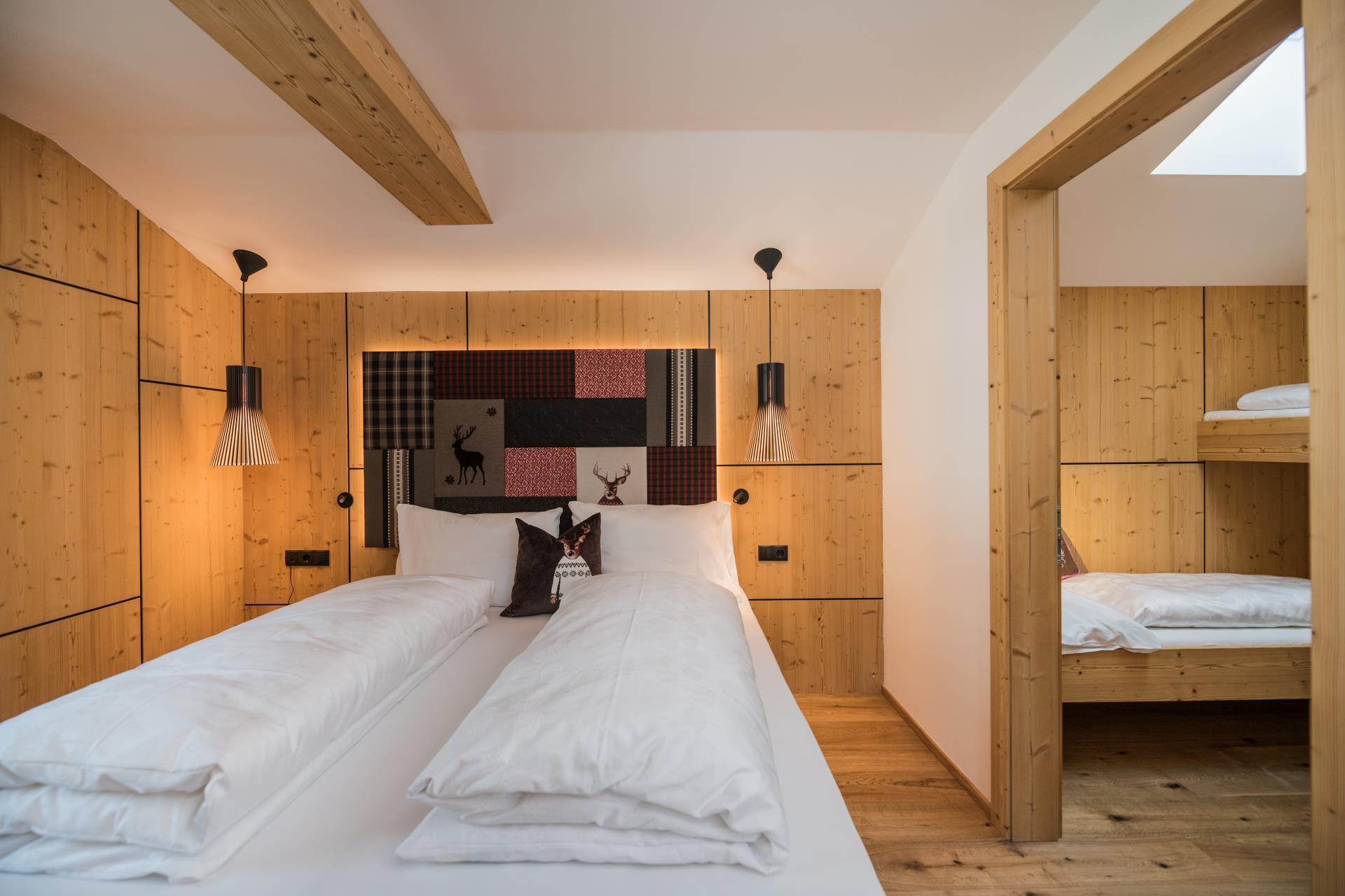 Hotel posiada 30 nowoczesnych, przestronnych pokoi rodzinnych o powierzchni 30 – 35 m2 dla max. 4/5 osób. Każdy z nich posiada prywatną łazienkę z wanną, WC, suszarką do włosów, telewizor i sejf. Większość dysponuje balkonem. Z okien rozpościera się widok na malowniczy krajobraz Dolomitów Południowego Tyrolu.